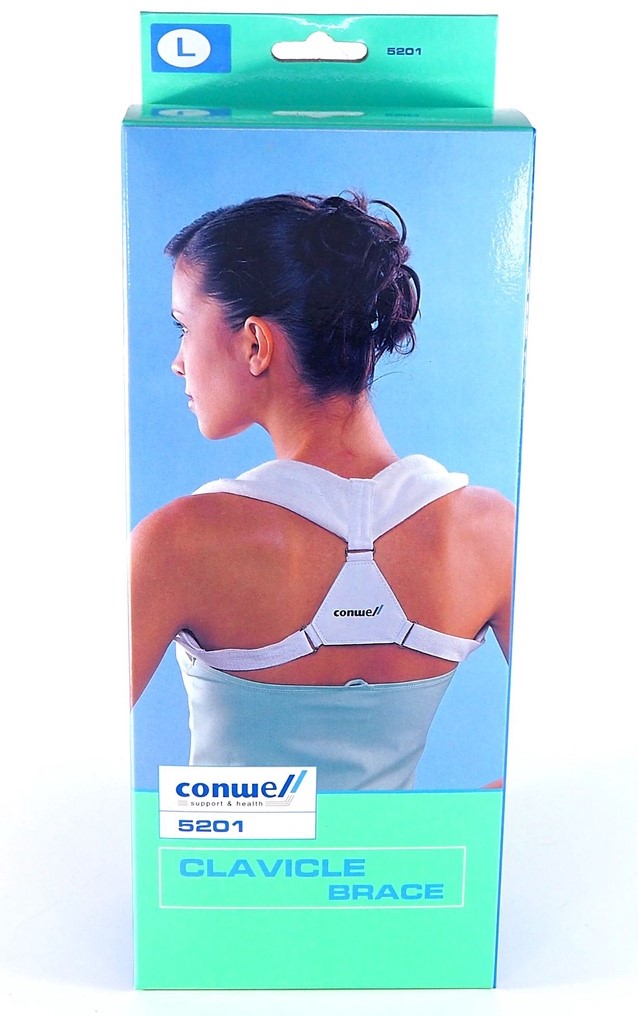 Clavical brace is padded two ways grips buckle provides flexability for fit and adjustment.